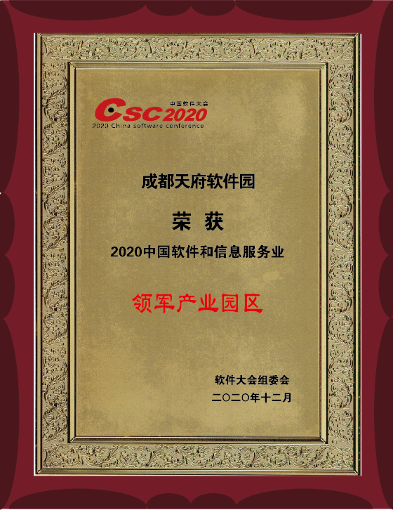 12月18日,在2020ICT影响力峰会·中国软件大会上,中国电子信息产业发展研究院授予成都天府软件园“2020中国软件和信息服务业·领军产业园区”称号。